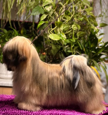 Here we celebrate the Lhasa Apso’s elegance and personality, including everything from basic grooming to show preparation, ensuring our Lhasa Apsos are always ready to impress. We are skilled in show techniques, making sure our dogs stand out in any competition.